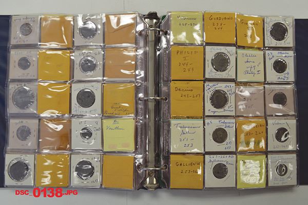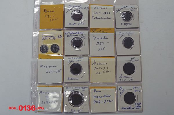 Ancients. A selection of everything. Many of the Roman Emperors are represented with a copper, although some are lacking. Some early Byzantine coppers also included. All identified to ruler. Some have verdigris issues. Most are Good to Very Good, but identifiable. Four museum reproductions also included. A binder with just over 125 pieces.