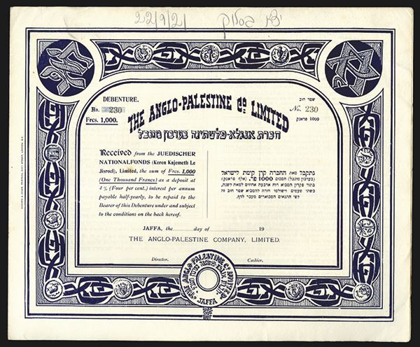 Palestine. Lot of 30 bonds, All Unissued., Pencil notations , VF/XF+.