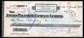 Jerusalem, 1906. 600 Francs, Unlisted issued Bank check or draft. Black on light green underprint. VF condition. Appears to be uncancelled. Written in Hebrew and English. Rare early Palestine fiscal paper.