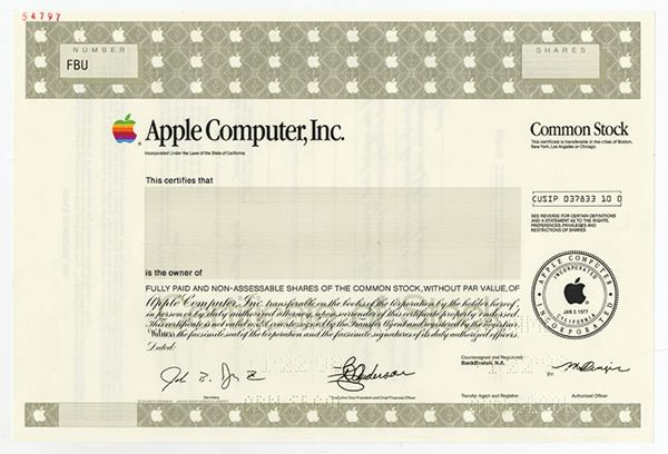 California, 1998, Pin punched Specimen Stock, Odd Shares, Black on grey border and underprint with company logo on left by title, VF-XF condition, SC-USBNC. Facsimile of Executive V.P and CFO, Anderson.