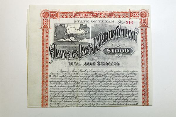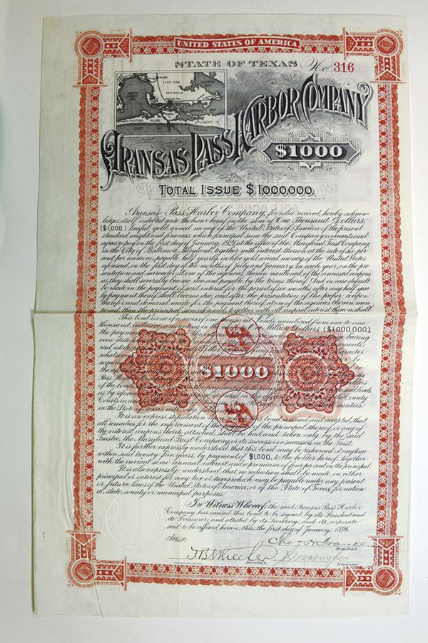 Texas. $1000 Gold Coupon Bond. I/U. Very Fine +.