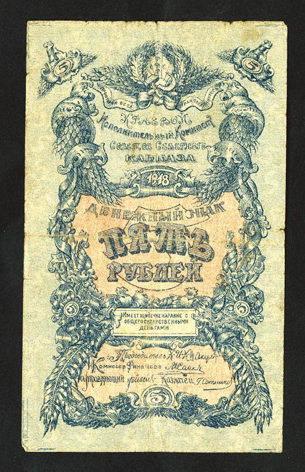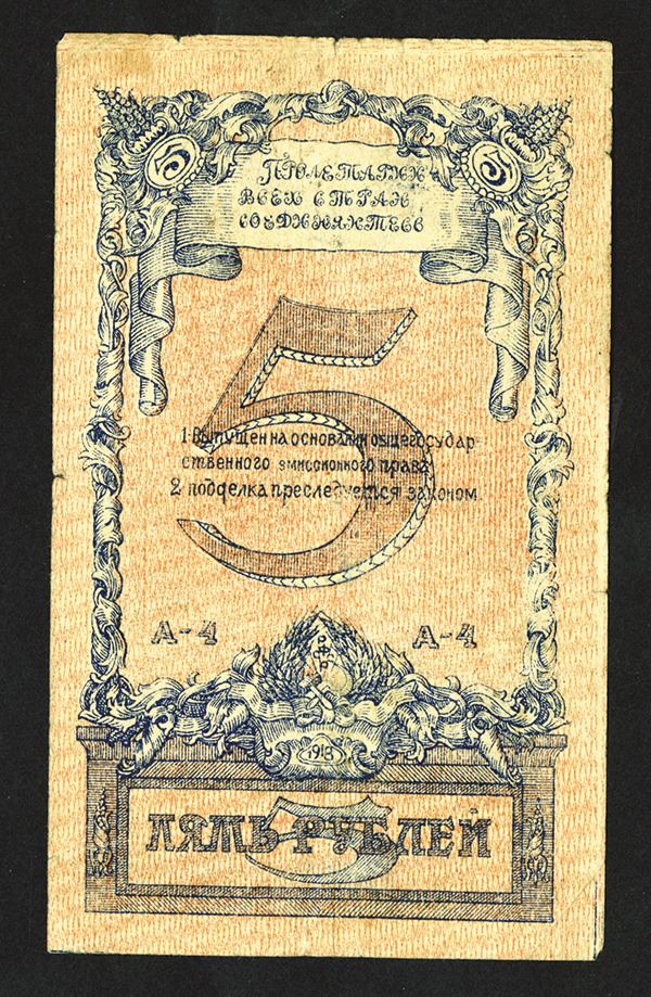 Russia, issued 5 Rubles, 1918, P-S456, choice Fine.