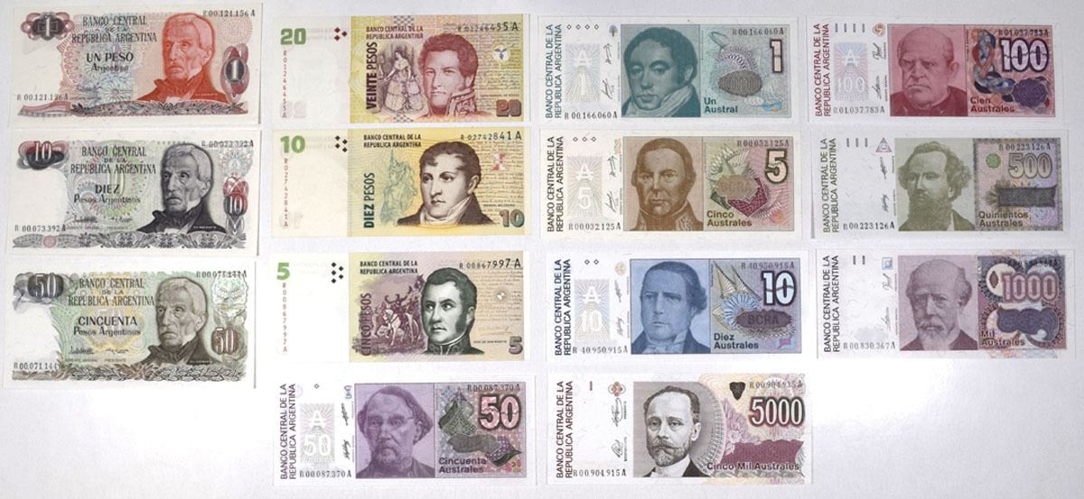 Argentina, 1983 to 2003. Lot of 14 Issued Replacement Banknotes, Includes: 1 Peso Argentino, P-311r; 10 Pesos Argentinos, P-313r; 50 Pesos Argentinos, P-314r; 1 Austral, P-323ar; 5 Australes, P-324ar; 10 Australes, P-325br; 50 Australes, P-326br; 100 Australes, P-327cr; 500 Australes, P-328ar; 1000 Australes, P-329dr; 5000 Australes, P-330er; 5 Pesos, P-353r; 10 Pesos, P-354r; 20 Pesos, P-355r. Notes range from AU to Unc condition and printed by CdM. (14). Sold "AS IS" no returns accepted.