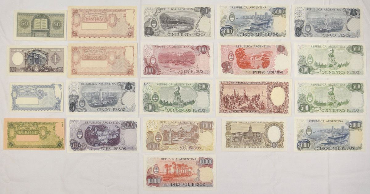 Argentina, L.1947 (1948-50)-ND (1983-84). Lot of 21 Issued Banknotes, Includes: L.1947 (1948-50), 50 Centavos, P-256, CMN; L.1947 (1950), 50 Centavos, P-259a, Garrasi; ND (1952-55), 1 Peso, P-260b; ND (1951-52), 1 Peso, P-262, CMN; ND (1951-59), 5 Pesos, P-264d (2), CMN; ND (1957-67), 100 Pesos, P-272a; ND (1960-62), 5 Pesos, P-275b, CMN; ND (1971-73), 5 Pesos, P-288 (2), CMN; 10 Pesos, P-289, CMN; ND (1974-75), 500 Pesos, P-298a (2); ND (1976-78), 50 Pesos, P-301b; 100 Pesos, P-302b; ND (1977-82), 500 Pesos, P-303c; ND (1976-83), 1000 Pesos, P-304b; ND (1977-83), 5000 Pesos, P-305b (2); ND (1976-83), 10,000 Pesos, P-306a; ND (1983-84), 1 Peso Argentino, P-311a, CdM. Notes range from UNC to Gem UNC condition. (21). Sold "AS IS" no returns accepted.