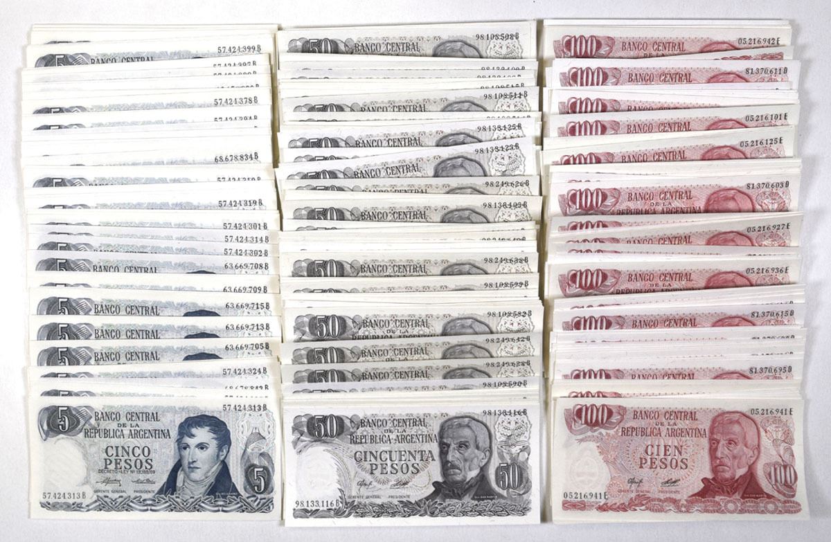 Argentina…., ND (1974-82). Lot of 280 Issued Banknotes, Includes: ND (1974-76), 5 Pesos, P-294 (95); ND (1976-78), 50 Pesos, P-301 (91); ND (1973-76) 100 Pesos, P-303c (94). Notes range from XF to CU condition. (280). Sold "AS IS" no returns accepted.