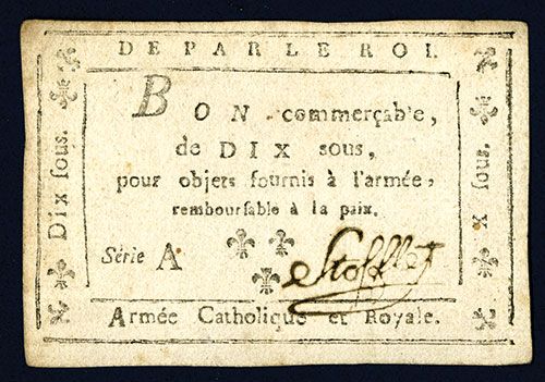 France, ND (1794), 10 Sous, P-A94A, Issued banknote, 87 x 60 mm's, AU to Uncirculated with mounting remnants on back.