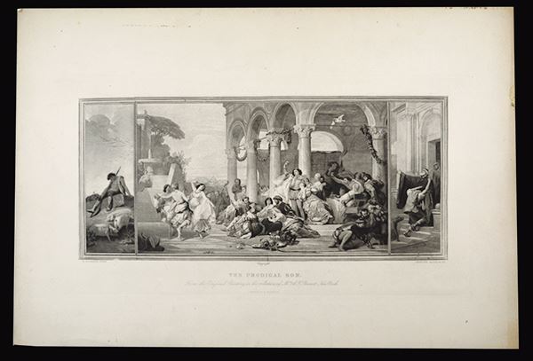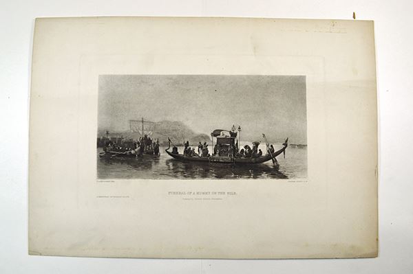 Gravure prints: The Prodigal Son; Funeral of a Mummy on the Nile; A gentlemen. Slight foxing mentioned for accuracy. Approx.. 11-1/2x 16-3/4. 3 pieces.