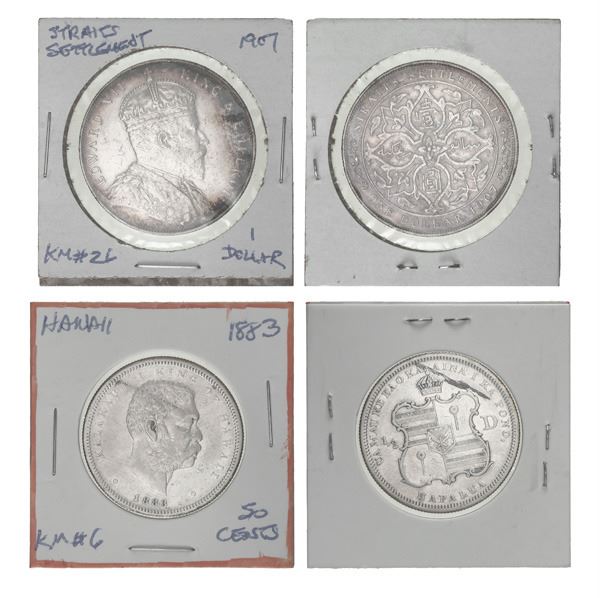 Various Rulers this lot presents a diverse collection of 56 coins from Australia, Bhutan, British North Borneo, Burma, Ceylon, Fiji, French Oceania, French Polynesia, Hawaii, India (including East India Company), Japan, Korea (South), Malaysia, Nepal, Netherlands Antilles, Netherlands East Indies, New Guinea, New Hebrides, New Zealand, Philippines, Samoa, Sarawak, Seychelles, Singapore, South Vietnam, Straits Settlements, and Tonga. Highlights include Australia's Crown coins (1937, 1938, KM-34), British North Borneo's 1 Cent (1889, KM-2), Fiji's Florin (1934, KM-5) and Dollar (1969, KM-32), French Oceania's 5 Francs (1952, KM-4), India's Rupees (1907, KM-508; 1940, KM-556; 1969, KM-77) and East India Company's Annas (1835, KM-446.2, KM-447.1), Japan's 50 Yen (1955, KM-75), Korea (South)'s 100 Hwan (1959, KM-3), Malaysia's Ringgit (1969, KM-7), Nepal's Rupees (1964, KM-786; 1968, KM-794), New Zealand's Dollars (1967-1970, KM-38.1, KM-40, KM-42, KM-43) and Crowns (1949, KM-22; 1952, KM-30), Philippines' Pesos (1907, KM-172; 1947, KM-185; 1961-1969, KM-192, KM-193, KM-194, KM-195, KM-261), Samoa's Tala (1967-1970, KM-7, KM-8, KM-9), Seychelles' Rupee (1939, KM-4), Singapore's Dollar (1967, KM-6), Thailand's Baht (1963, KM-85, KM-86), and Tonga's Pa'anga (1967, KM-17). Overall conditions vary from Very Fine to Choice Uncirculated, with many Uncirculated pieces (56). Shipping charges apply - weight 2.6 lbs. (photo on web site)