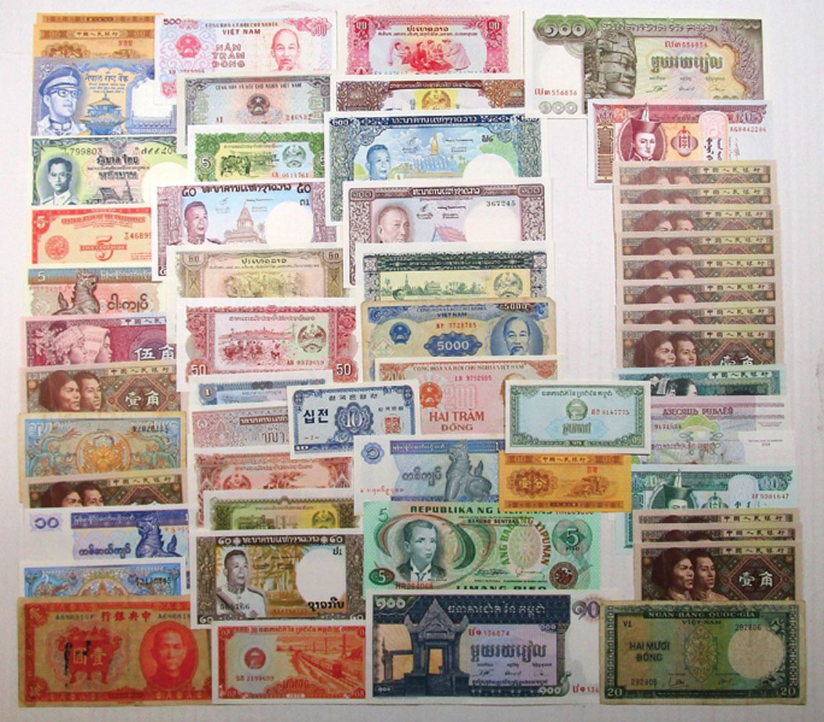 Various Asia and South-East Asia Countries, Lot of 160+ Asian Banknotes from Various Countries, Including: Vietnam, China, Cambodia, Mongolia, Belarus, Myanmar, Malaysia, Korea, Laos, Philippines, Bhutan, India, Nepal, Thailand, and more. Notes range from Fine to CU condition. (160+). Sold "AS IS" no returns accepted.