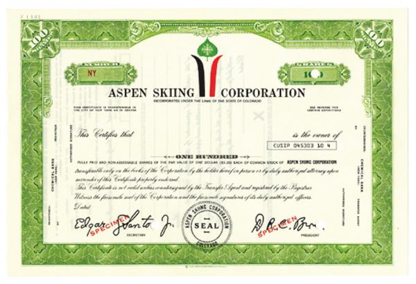 Colorado. 100 Shares Common Stock Specimen Certificate, Black print on lime green border and under tint, Company logo and title at top, Specimen overprints and POC's, VF-XF condition, NBNC.