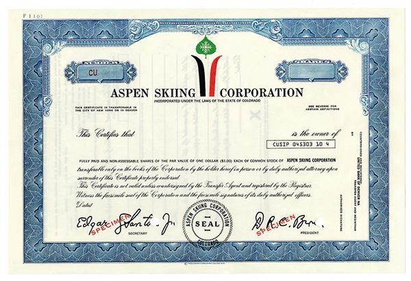 Colorado. Odd Shares Common Stock Specimen Certificate, Black print on blue border and under tint, Company logo and title at top, Specimen overprints and POC's, VF-XF condition, NBNC.