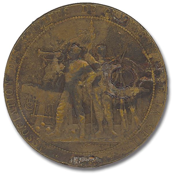 France, 1904 bronze, 50 mm. Engraved to L. Feuillet, some staining. By A. Lesaille, Fine.
