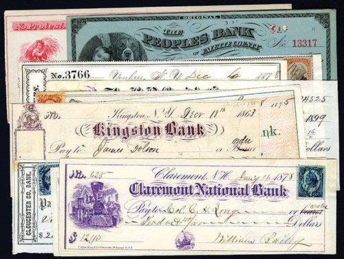 1840's-1890's, Assorted lot of New England Issued Checks, Mixed Lot in Fine-VF condition.