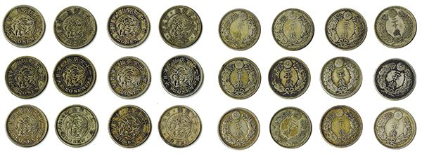 Yr.24(1891) F-VF; Yr.25(1892) VF; Yr.27(1894)(3) F-VF; Yr.28(1895)(4) F-VF, one is dark; Yr.29(1896) F-VF; Yr.30(1897)(2) both EF; Yr.31(1898)(8) Fine to EF; Yr.32(1899)(4) all VF. Most with silvery gray toning. [24]