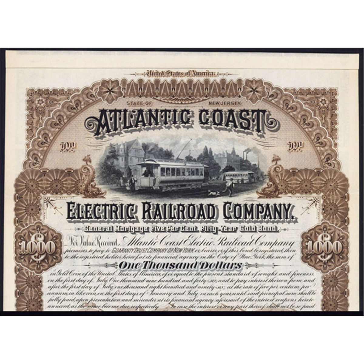 New Jersey, 1896, $1000, Specimen bond, Electric streetcars, Brown, FBN, POC's, XF.