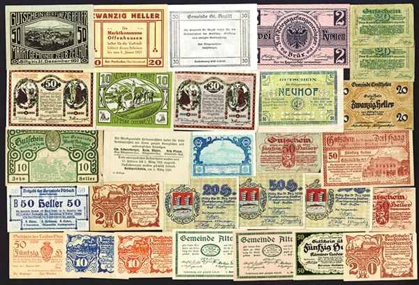 Austria. 1919-20. Includes Altaist, Ampflwang, Ansfelden Aschach, Attergau, Bergheim, Brixlegg, Brux, Durnstein, Feldkirchen Grein, Heidenreichstein, Hofkirchen, Insbruck, Linz, Mauthausen, Neuhof, Offenhausen, Purbach, Paura, Rannaridel, Rupperstahl, Schwallenbach, Sitzenberg, Stefanshart, Waldhausen, Wilhering, Ulmerfeld, Zittau. Mostly Extremely Fine or a bit better. More than 70 pieces.
