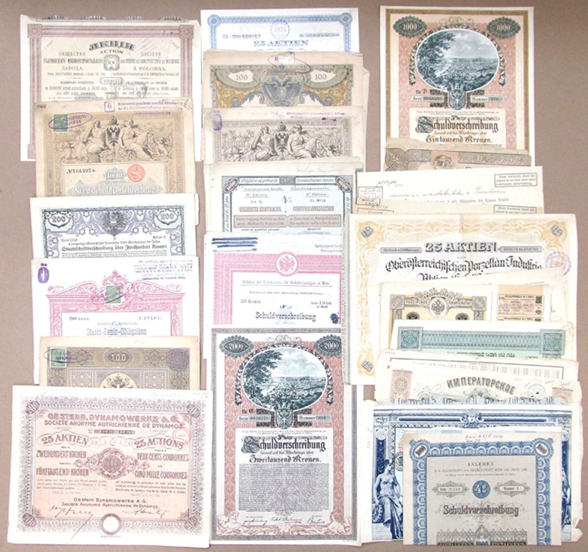 Europe. Lot of 26 I/C and I/U Certificates from various countries, including: Germany, Poland, Great Britian and Russia, Certificate are ranging from Fine to XF condition. (26). Sold "AS IS" no returns accepted.