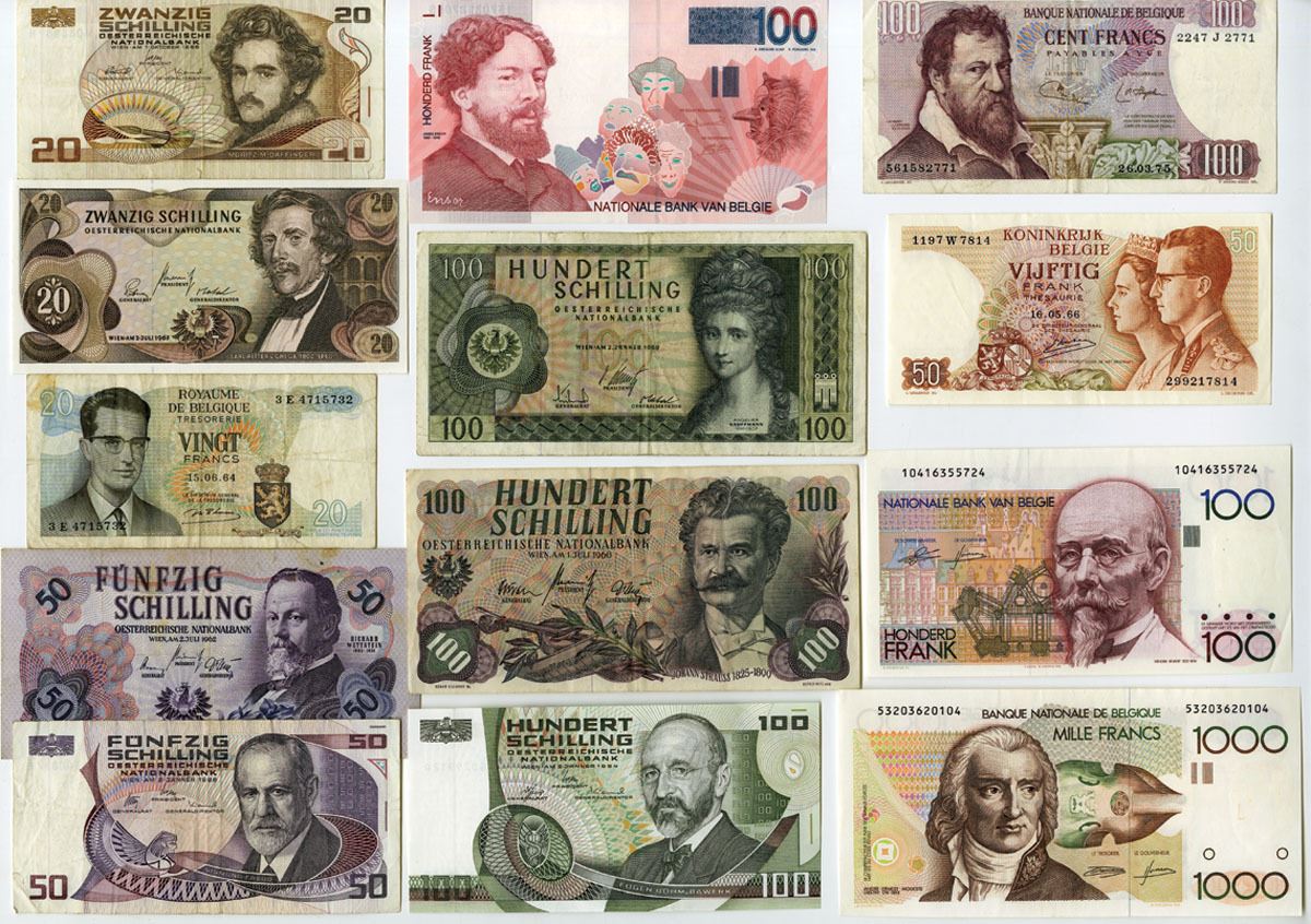 Austria and Belgium....., 1960 (1961) and, ND (1995-2001). Lot of 10+ Issued Banknotes, Includes: Austrian National Bank 50 Schilling, P-137a, 1962 (1963); 100 Schilling, P-138a, 1960 (1961); 20 Schilling, P-142a, 1967 (1968); 100 Schilling, P-145a, 1969 (1970); 20 Schilling, P-148, 1986 (1988); 50 Schilling, P-149, 1986 (1987); 100 Schilling, P-150, 1984 (1985); National Bank of Belgium 100 Francs, P-134b, 1975; Kingdom of Belgium 20 Francs, P-138, 1964; 50 Francs, P-139, 1966; 100 Francs, P-142a, ND (1982-94); 1000 Francs, P-144a, ND (1980-96); 100 Francs, P-147, ND (1995-2001). Notes range from VF to AU condition. (13). Sold "AS IS" no returns accepted.