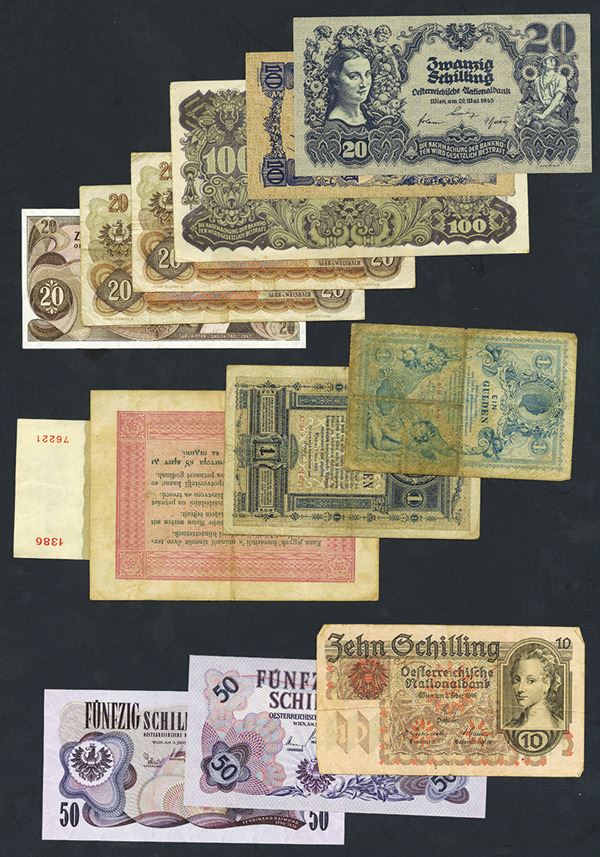 Austria. Early Imperial issues an Unc examples of 20 and 50 (2) Schilling 1962 issues. Otherwise Good-Very Fine. 13 pieces