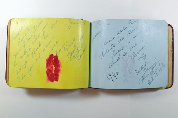 High School Autograph Album, started in 1946 and has dates thru 1949. Leather cover. However, after only a few pages of school chums and family members (some of which were originally in pencil and over drawn in felt tipped marker), you have a bunch with a Peabody MA location and later personalities: Bob Howard; Mary Small, Spencer Odon (piano) - William W. Edmonson (bass) and the Southernaires, Larry weeks (juggler); Spaulding trio; 4 Skating Macks; Mack Triplets; Edith Fellows; Tommy Dorsey, Pearl Nunes. , A George M. Cohan (dated 1948 in another hand, but the really famous one died in 1942).