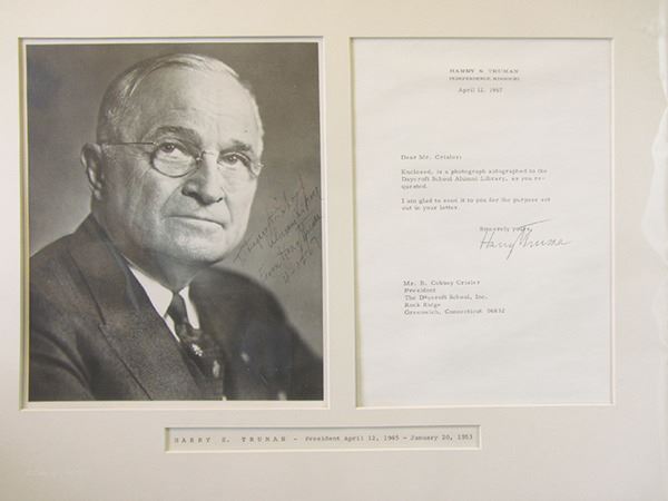 Photograph autographed to a Mr. Chrysler of The Day Croft School, Rock Ridge, together with original autographed letter to Chrysler, from Harry S. Truman, late President of the U.S.A.