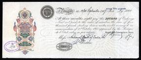 Petrograd, Russia. Lot of 5 Exchanges, all 2nd of Exchanges for 5000 Pounds Sterling each and are dated in August and September,1917. All have colorful Russian imprinted Revenue stamps on left and circular and oval Azoff-Don bank seals on note. All are in Fine to VF condition. Scarce Russian Revolution Fiscal paper.