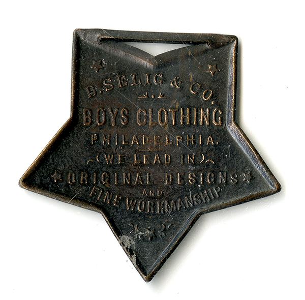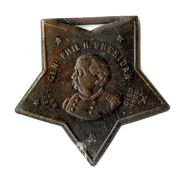 Philadelphia, PA, Advertising token with an area for attachment to a ribbon, the medal honors Sheridan with his portrait and on the back an advertisement for boy's clothing. 5 Pointed star, 40 x 40mm's, Copper or bronze, XF. Designed by Rudolph P. Laubenheimer and from his family archives. Rare and attractive.