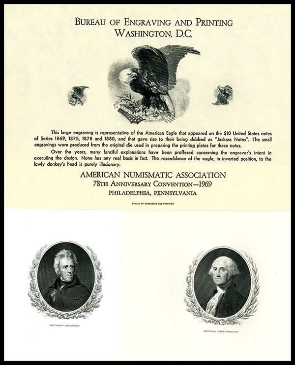 BEP Souvenir Cards and Vignettes. Set of 34 Presidents from Washington to Nixon on 6 x 8” cards; ANA 78th Anniversary Convention 1969 Souvenir Cards(2). [36]