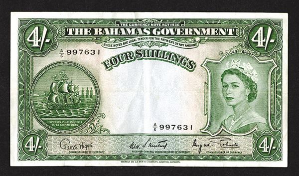 Bahamas. 4 Shillings. P-13d. Elizabeth II at right. Fine-Very Fine.