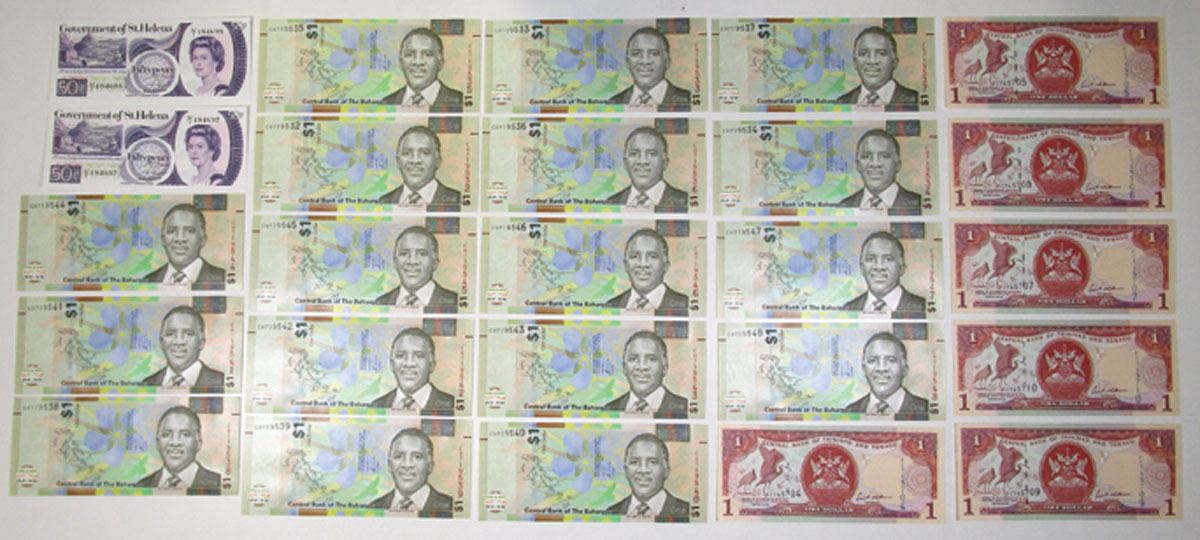 Bahamas, Trinidad & Tobago, and St. Helena. Lot of 26 Issued Banknotes including: 2017, Central Bank of the Bahamas $1, P-77 (17), G& D; ND (1979), Government of St. Helena 50 Pence, P-5a (2); 1942, Government of Trinidad and Tobago $1, P-5c, TDLR; 2006, Central Bank of Trinidad and Tobago $1, P-46 (6). Notes vary between Choice Fine to Choice Unc condition. (26). Sold "AS IS" no returns accepted