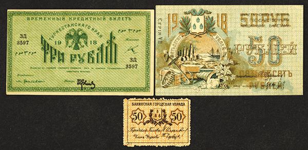 Russia - Transcaucasian. Baku. 50 Kopeks. P-S728a; Soviet Baku City Administration. 50 Rubles. All Choice Uncirculated. 3 pieces.