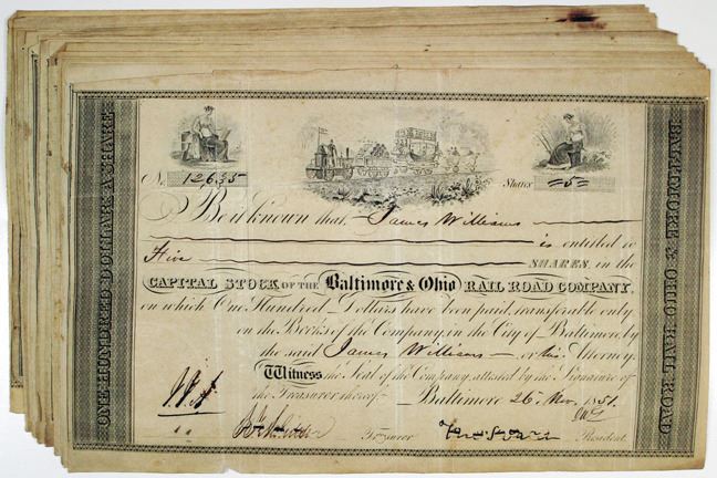Baltimore & Ohio Rail Road Co. I/C Stock Certificate Group of 20, 1851