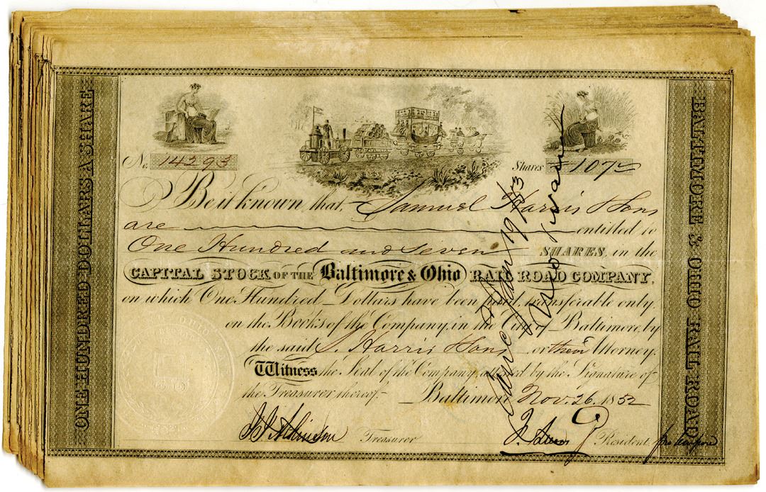 Baltimore & Ohio Railroad Co., 1852, Group of 20 I/C Stock Certificates