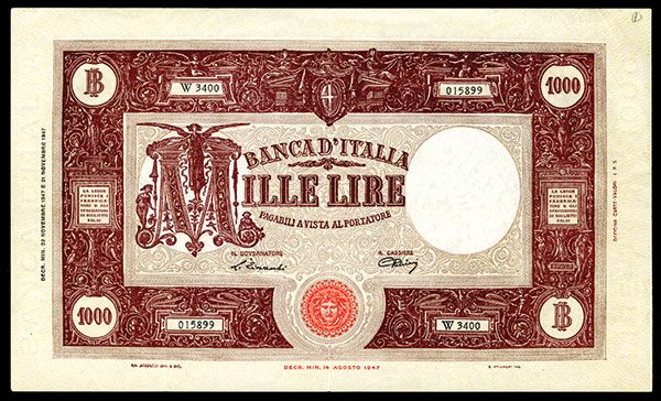 Italy, issued note, 1000 Lire, 1947, P-72c, very choice VF with the appeal of an XF.