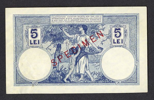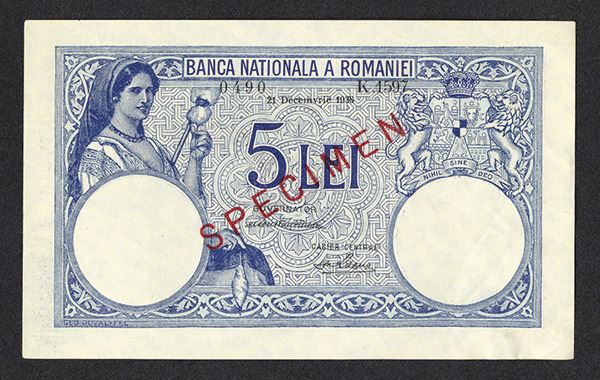 Romania, specimen 5 Lei, dated 21 December 1936, P-40s, AU.