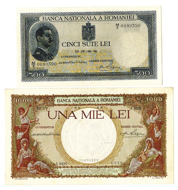 Romania, lot includes 1000 Lei, P-44a, Choice Very Fine; and 500 Lei, P-42b, Extremely Fine to Almost Uncirculated.