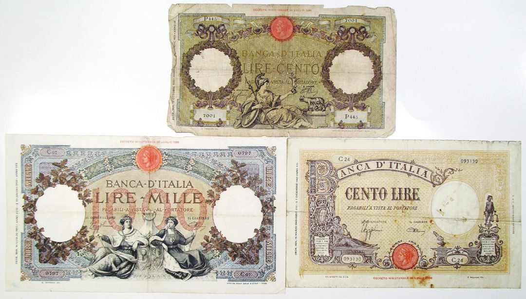 Italyƒ. 1939-1942. 100 and 1000 Lire, P-55b; 56c; 59, issued banknote trio, VG to Fine (3).