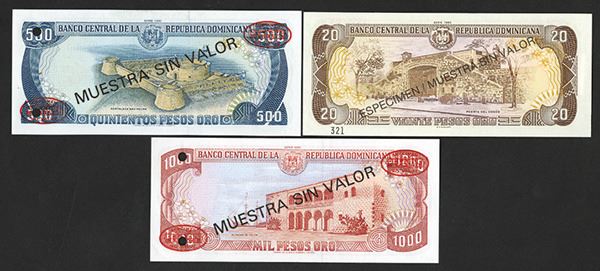Dominican Republic. Lot of 3 notes, Includes 1992, 20 Pesos Oro; 1992, 500 Pesos Oro and 1991, 1000 Pesos Oro, all are in Choice to Gem Uncirculated condition, Fresh and attractive notes, The 20 Pesos printed by BAB and the 500 and 1000 Pesos Printed by TDLR.