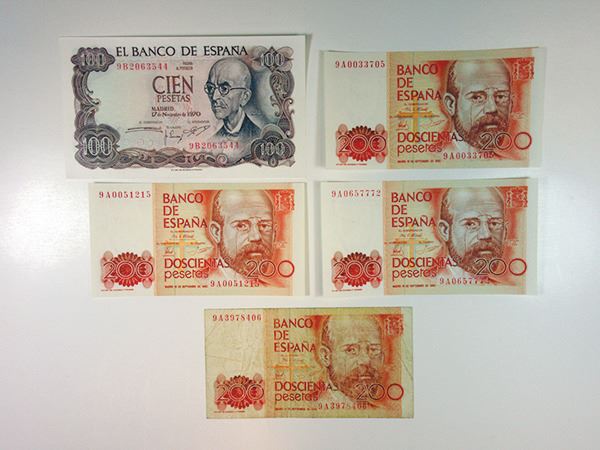 Lot of 5 notes, El Banco de Spain, P-152a & P-156(4 pieces). A P-156 is VG, and the other notes are all Uncirculated.