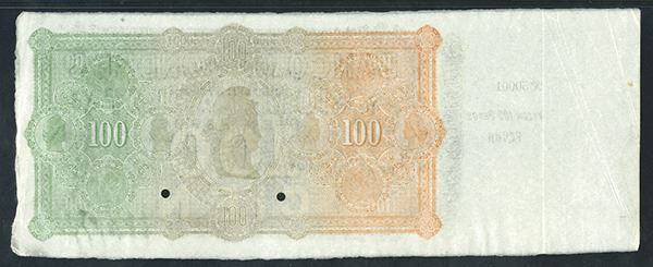 Montevideo, Uruguay, 187x (1870's), 100 Pesos, P-S241r given by PMG to this note that was not previously listed in the SCWPM. The normal remainder has no date in the dateline, this note is similar to the 1870's issue with 187x but this series formally only went up to the 20 Pesos, a 100 Pesos was not previously known, Black on light green with Columbus on left, running naked boy on right with rope, back m/c with cameo medallions, Counterfoil on left still attached, PMG graded About Uncirculated 53 EPQ, BW&C.