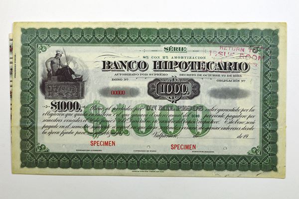 Chile. $1000 Pesos Coupon Bond Specimen. ABNC. Very Fine+.