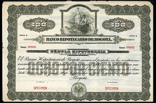 Colombia, 19xx, $100, 8% Bond Series D, Specimen Bond, POC's, VF-XF condition, ABNC.