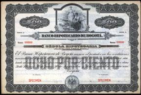 Bogota, $500 8% Series A bond. Blue border with female allegorical vignette. ABNCo. Specimen with coupons, VF