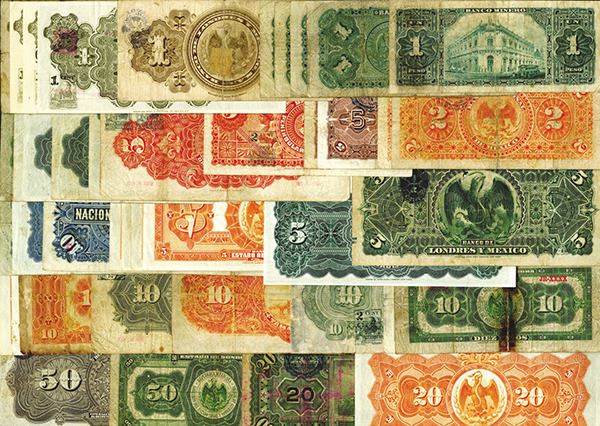 Mexico. Revolutionary. Also with Banco Oriental, Banco Tamaulipas; and Republica Mexicana. Mostly Good. 43 pieces,