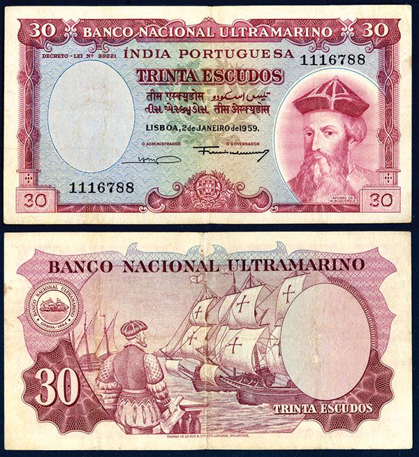 Portuguese India, issued note, 30 Escudos, 1959, P-41, PMG 30 VF, TDLR.