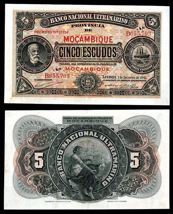Mozambique, 1941, 5 Escudos, P-83a, Issued banknote, Crisp XF with the appearance of AU with exceptional paper quality, large even margins and sharp corners, BWC.