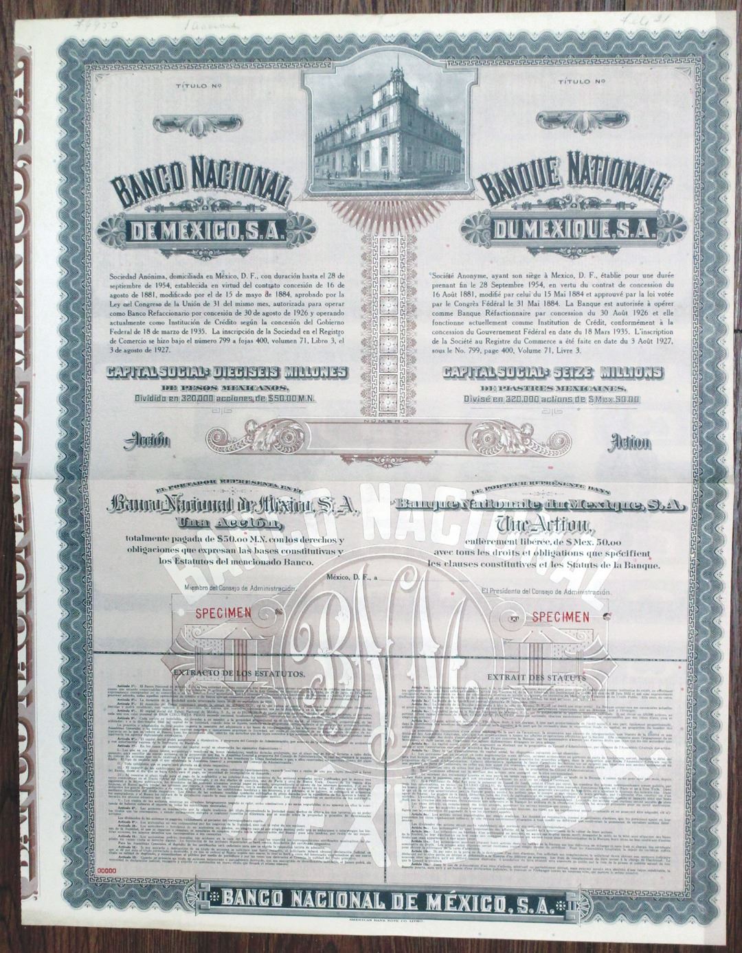 Mexico, 1927. Specimen Coupon Bond in Spanish and French, Black text with black border and purple background. Specimen overprints and POCs. VF condition, ABNC.