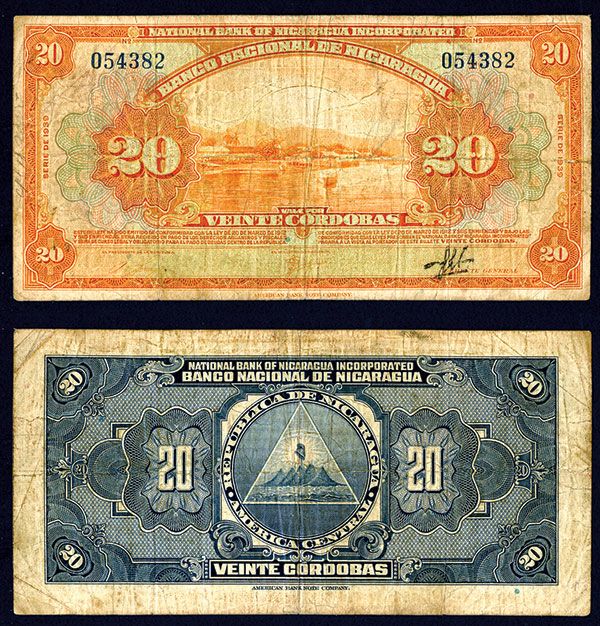 Nicaragua, issued note, 20 Cordobas, 1939, P-67b, attractive Fine.