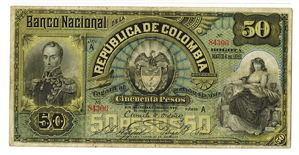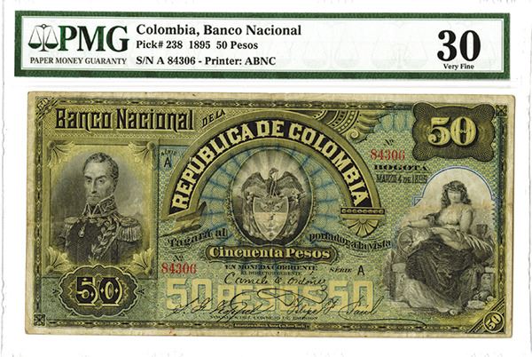 Colombia, 50 Pesos, P-238, PMG graded Very Fine 30, ABNC.