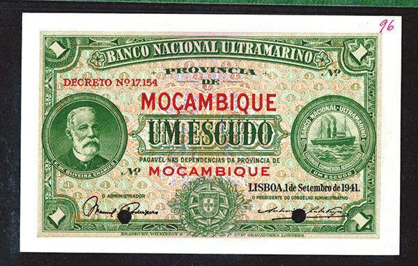 Mozambique. 1 Escudo. P-81s. Chamico at left, ship seal at right. POCs with hand number at top right margin. PMG Gem Uncirculated 65 EPQ.